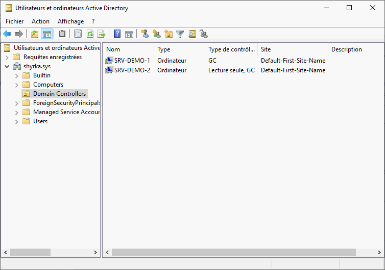 Utilisateurs et ordinateurs Active Directorynous confirme la présence du serveur dans les contrôleurs de domaine.