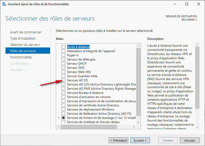 - A cette étape, on rentre dans le vif du sujet. Dans cette fenêtre, on peut choisir les rôles à installer. On choisira donc