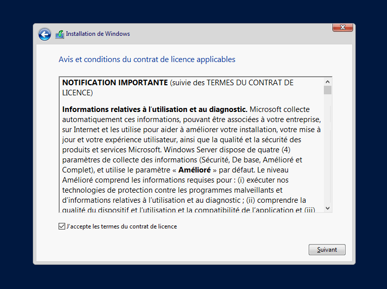 Une fois la langue choisi, on clic sur Suivant, on arrive alors sur l'écran d'installation.