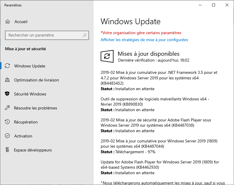 Avant de continuer, je recommande de faire toutes les mises à jour et de redémarrer le serveur au besoin.