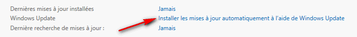 - On va maintenant paramétrer Windows Update. Pour cela, on va cliquer sur le lien en face du nom.