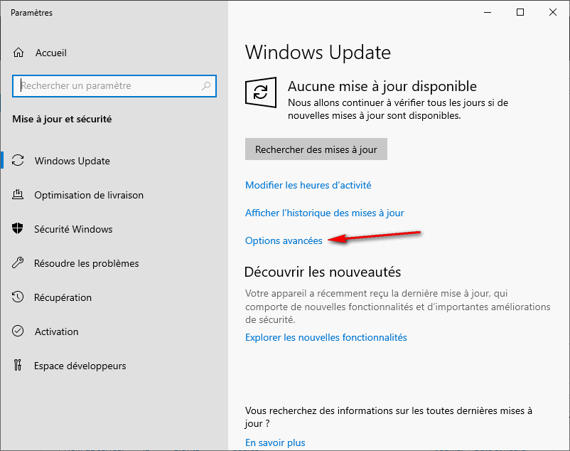 - La fermeture de la fenêtre valide les options, on peut alors rechercher et installer les mises à jour.