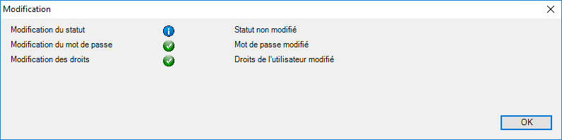 Modifierlance l'application des modifications. Une fenêtre apparaît alors pour nous informer des différents succès, informations ou échecs rencontrés.