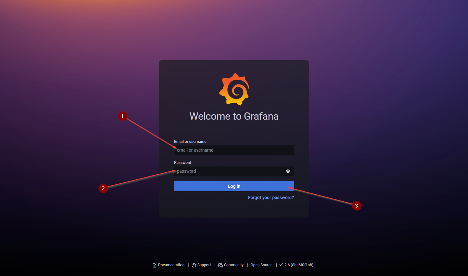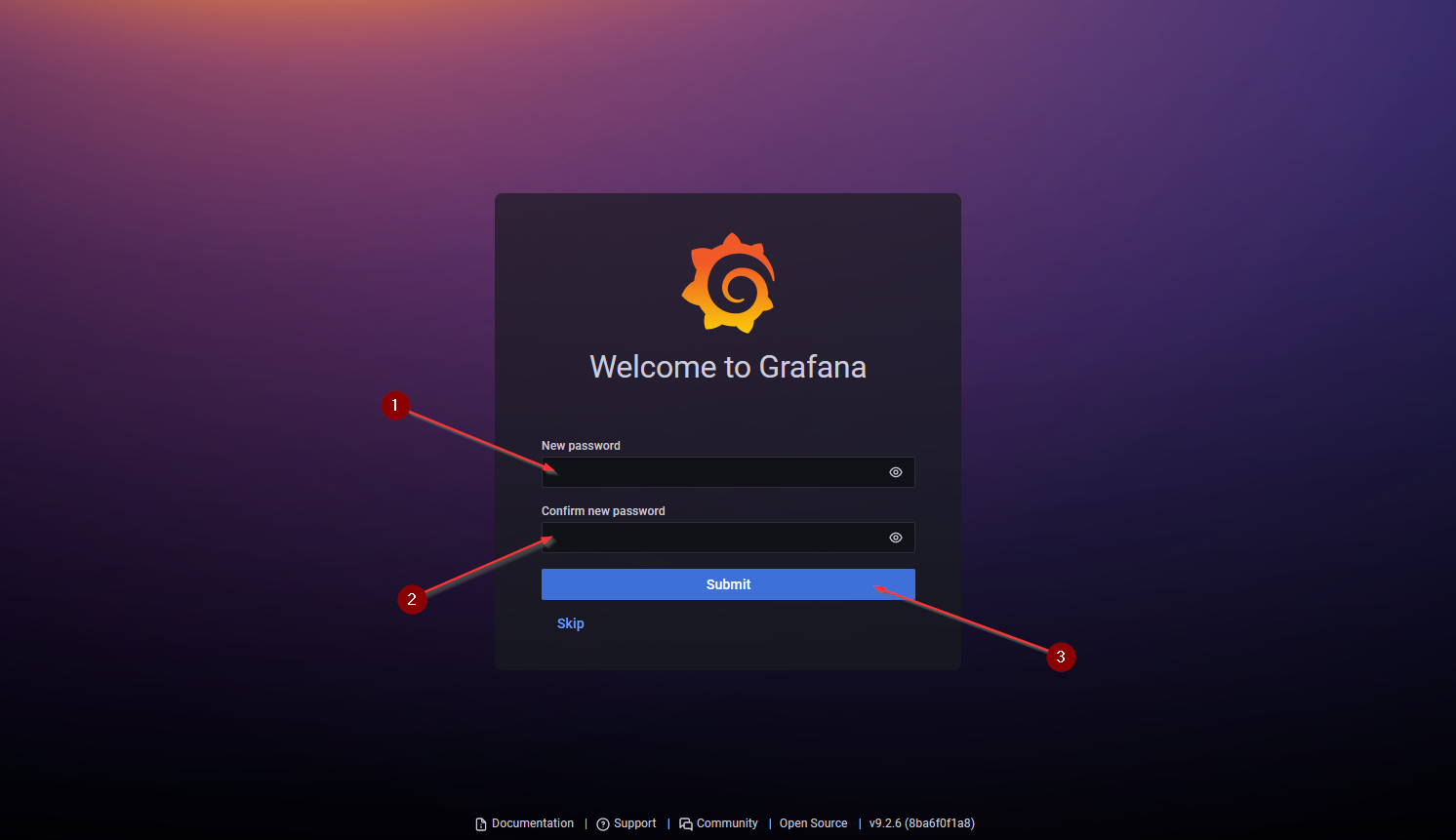 grafanasur le port3000du serveur. - Il nous faut commencer par définir le mot de passe administrateur. Par défaut, le compte utilisateur est