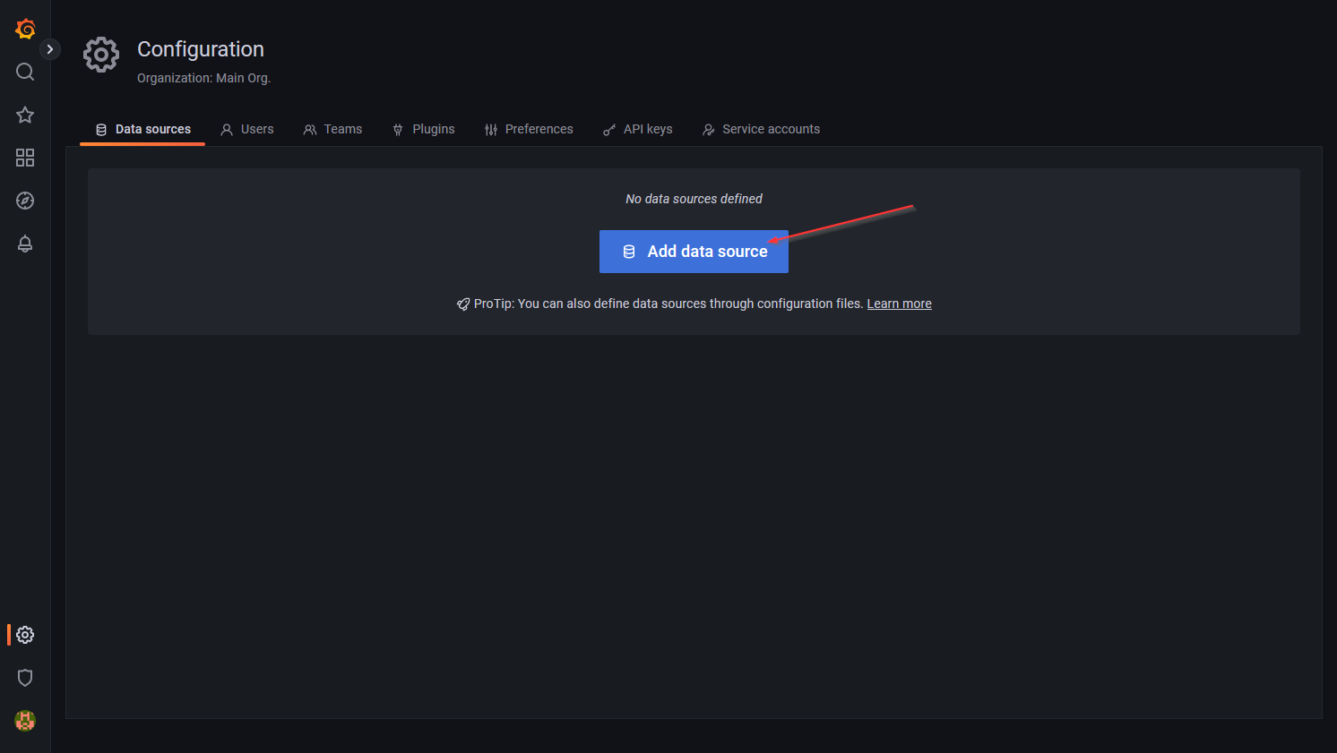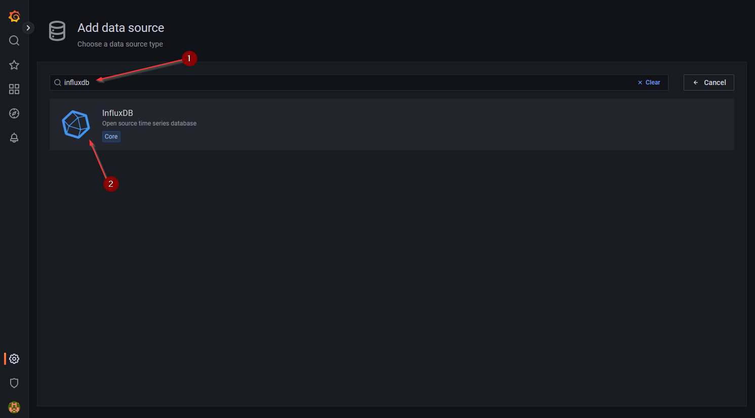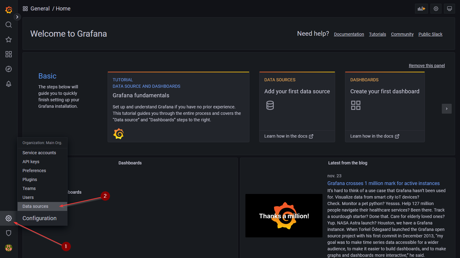 influxdb. On va donc cliquer sur l'icône des paramètres puisData sources: