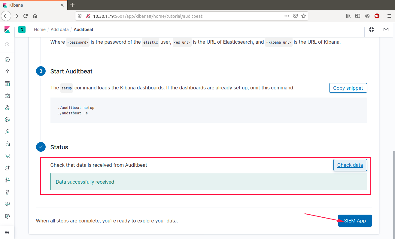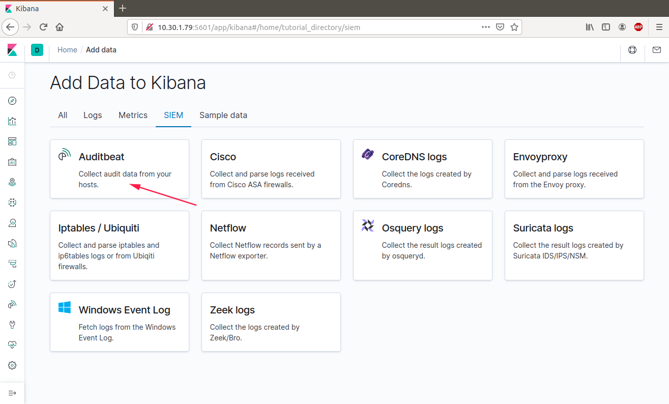 Check data(ça peut demander quelques minutes depuis la configuration deauditbeatavant que Kibana ne reçoive des données) :