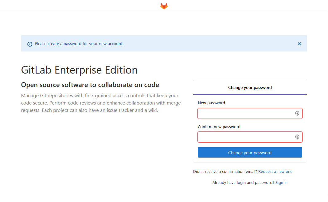 GitLabvous demande de configurer le mot de passe de l'administrateurroot: