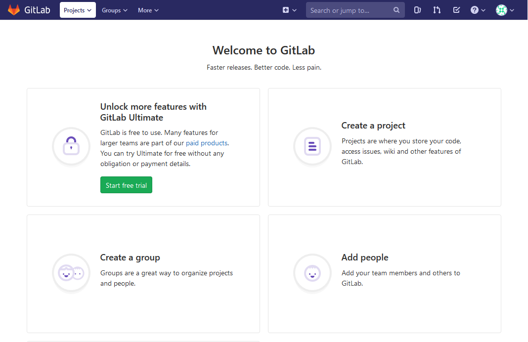 Félicitations, vous avez désormais un serveurGitLab opérationnel.