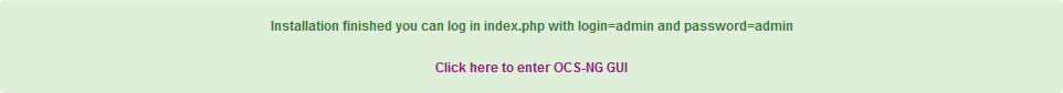 Click here to enter OCS-NG GUIréapparait. On clique dessus donc :