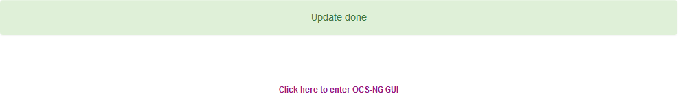 Click here to enter OCS-NG GUI. - Il se peut que la base ait besoin d'un mise à jour. Dans ce cas, un message d'information apparaît. On clique sur
