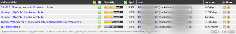 • Une faille a été détectée mais OpenVAS a reçu l'ordre de l'ignorer. Voir OpenVAS - Utilisation avancée.