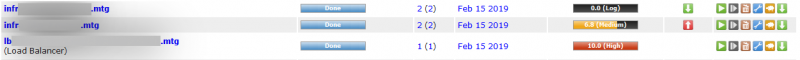 La listes des tâches nous offre différents champs. On y trouvera les noms des tâches, leurs status, le nombres de tests, la date du dernier rapport la sévérité des vulnérabilités détectées, l'évolution de ces dernières et les actions disponibles.