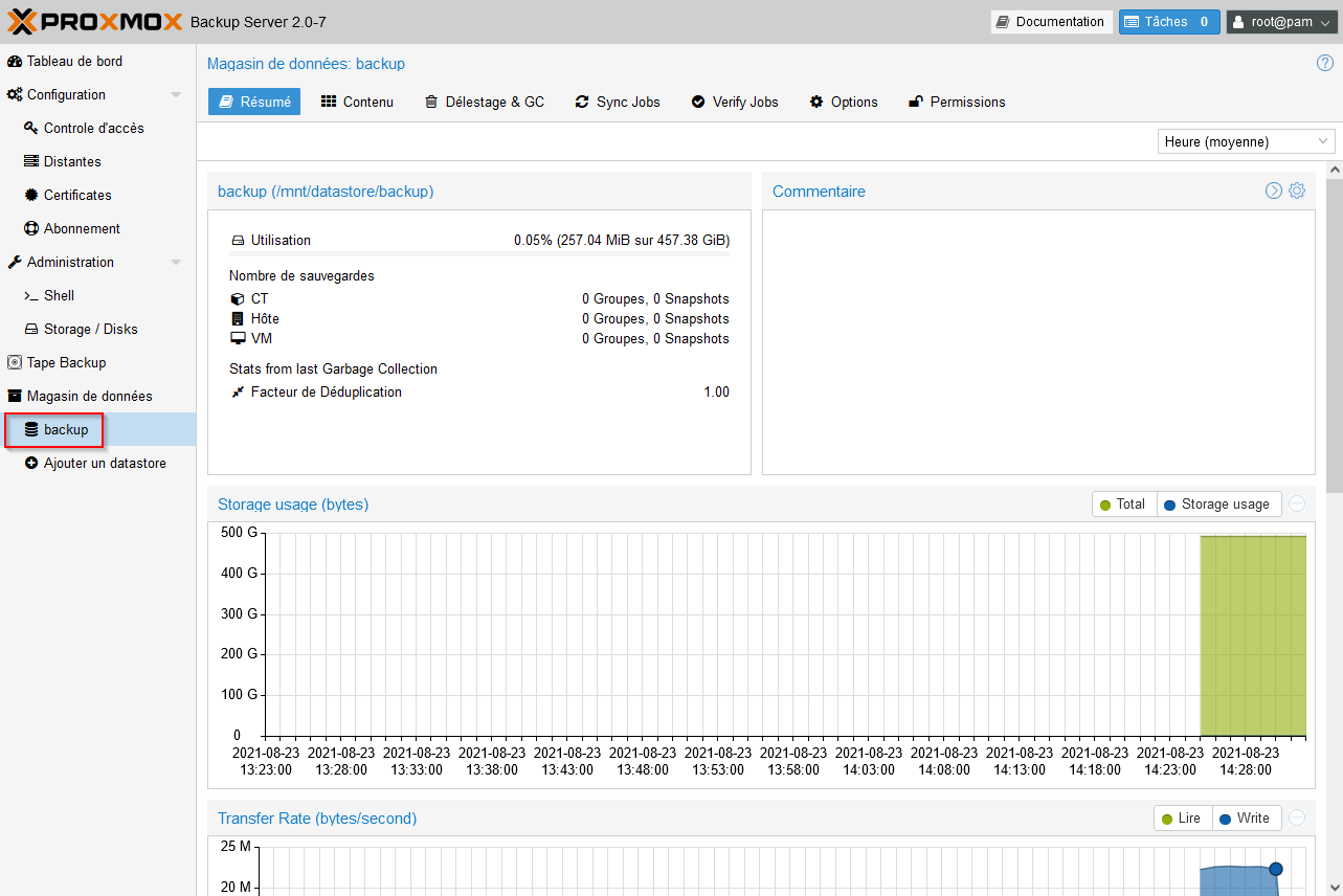 - Le nouveau datastore apparaît alors dans l'interface de PBS :