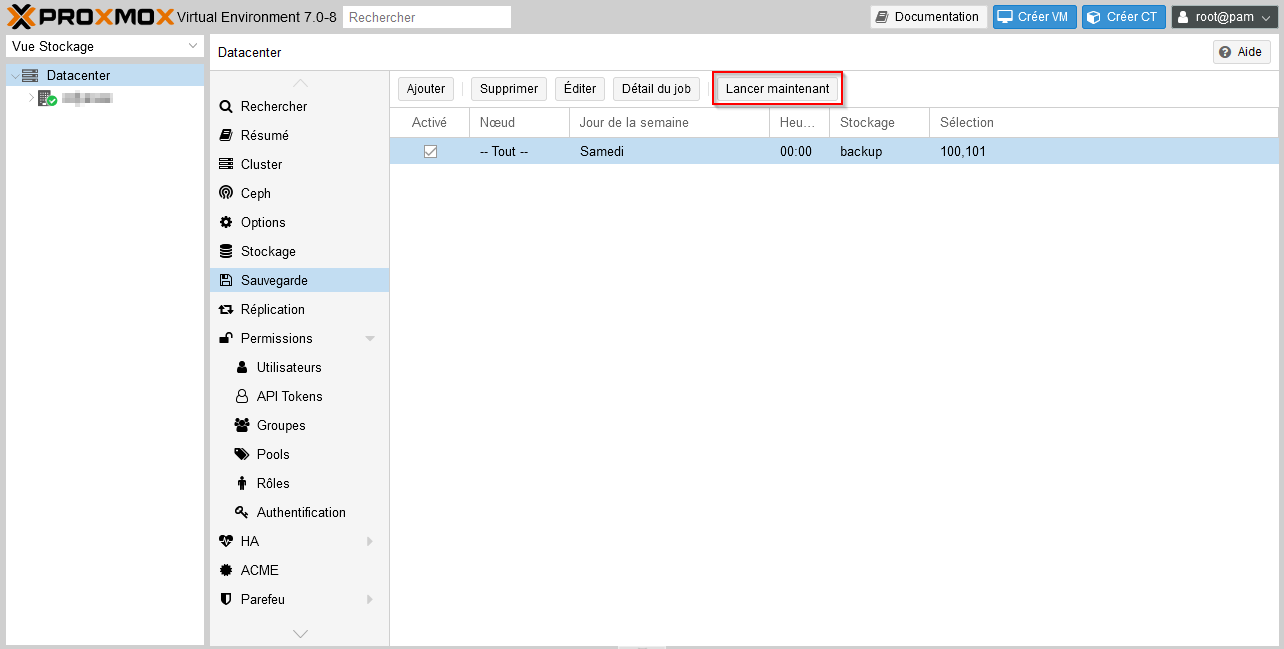 Et voilà, vous disposez maintenant d'une sauvegarde à minima. Pour plus de fonctionnalités, il va falloir passer surProxmox Backup Server (PBS).